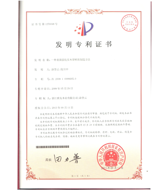美國發明 表面增強實木地板及其制造方法