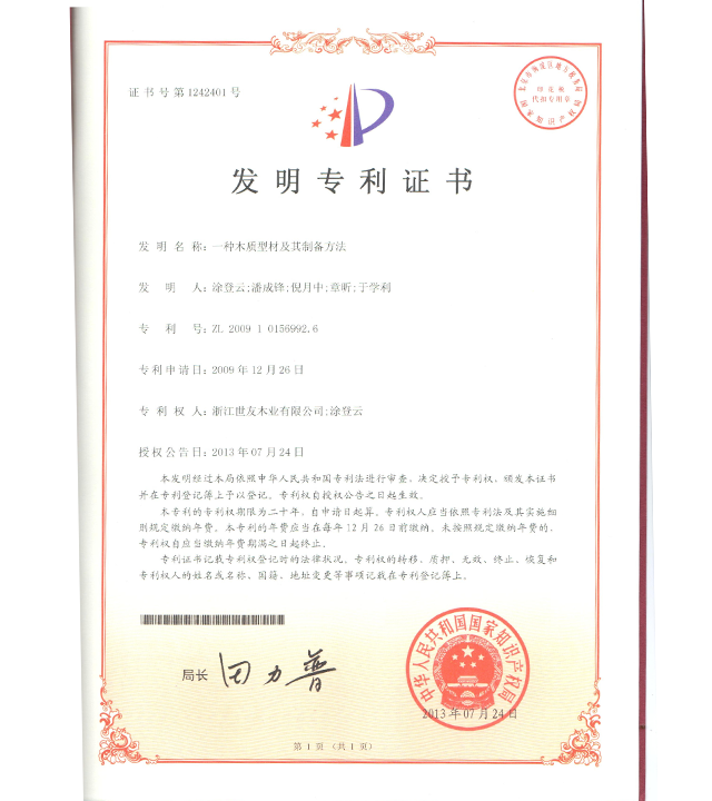 美國發明 一種木質型材及其制造方法